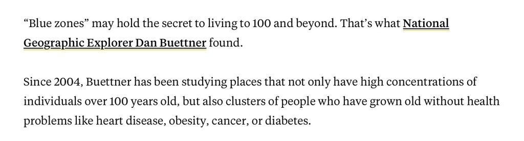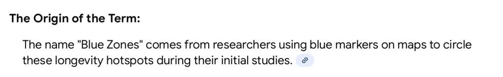 Now I am sure that many of us know that there are numerous other countries, globally, where people can, and many do, live to be ‘Centenarians’, the main difference being that they are not in the high concentration of numbers that there are in the officially categorised ‘Blue Zone’ areas. But that got me to thinking once again, because I have visited this ‘Blue Zone’ subject before, but I continually hear the claims being made about the ‘Healthy Mediterranean Diet’, so why is it, I ask myself, that only one Island area in Greece, and one geographical area in Sardinia, has attained this ‘Official’ Blue Zone Status ? Or could it be that ‘Netflix’ documentary film makers just keep going to the same already established ‘Blue Zone’ areas or, perhaps, there are other areas currently being researched but not yet given the Longevity status 🤷♂️ Now of course, me being me, and nothing better to do with myself on these stormy wet weather days, I went to the font of all knowledge, yes ‘Senor Google’, well it would have been rude of me not to, and I asked the straightforward question ‘Are there any Blue Zones’ in Spain?’ However, this is the unexpected response I received………………