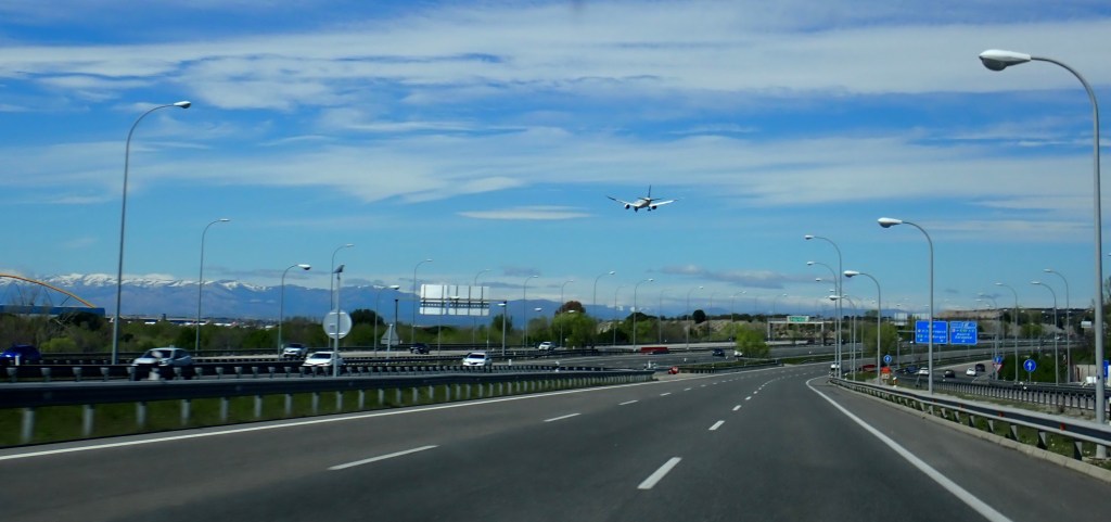We were pretty much still on schedule when we reached the Southern outskirts of Madrid, we would be heading East on to the Ring Road around the city, which would then swing us back around to the Northern side of the city, passing close to the ‘Adolfo Suarez Madrid-Barajas Airport’, which is the primary International airport serving the city. With it being a Saturday, usually a very busy shopping day, and being on one of the main routes to the Airport, we had anticipated the traffic to be extremely busy and hectic, much like the M25 route going around the Western side of London and serving as the main route to Heathrow Airport, and commonly joked about as being one of the largest car parks in Europe, as the three and four lanes of traffic are regularly at a standstill, but we were pleasantly surprised, although it wasn’t anywhere near as traffic free as our journey had been thus far, under the circumstances it was very much quieter than even we had anticipated, we encountered no hold-ups and when we saw the constant flow of aircraft coming in to land, we knew that we were very close to our exit on to the A1 motorway that would take us North, almost all the way to Bilbao.