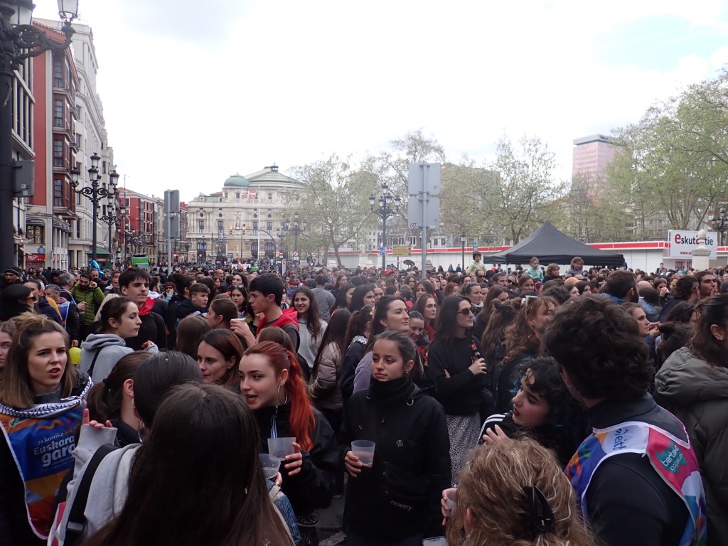 By way of an example, Shazza and I we were both stood waiting, amongst the crowds, on a bridge spanning the river, waiting for some sort of a procession to pass by when a woman, with a toddler in tow, came and stood next to us, to also view the procession. I noticed that she too was wearing one of the Athletic style bibs, so not being backwards at coming forward, and in my limited but sufficient Spanish, mixed with a little bit of ‘Spanglish’ 🤭 I asked her the significance of them. She explained, in Spanish, not Basque, that today was the eleventh, and final day, of a run by a group of purely ‘Basque’ people. This group of runners had spent the last eleven days running around towns and villages through the whole of the Basque Region, an annual event, to celebrate the continued existence and support of this local Autonomous community, only true Basque born and bred people wore these ‘Bibs’ and, whilst they did not all participate in the whole eleven day run, many inhabitants from the local towns and villages would join the run in their area, and then many of them travelled to be here in Bilbao where their would be entertainment, music, culinary events and general partying in the streets, the whole day and well into the evening. She then asked us the usual questions, where we were from, why we were in Bilbao and then said that she hoped that we would join in the festivities and have a really enjoyable day. Purely by coincidence, very much later that day, on our way back to the hotel, she saw us and recognised us, she stopped us and asked if we were enjoying ourselves, and then said that she hoped that we would enjoy our second day exploring her city. Now whilst we had many memorable moments that day, that one particular moment just rounded off our day perfectly, we certainly had no prior knowledge of this event when we had originally booked our ferry tickets, but it is unplanned coincidences such as this, that make visits to places just that little bit more special and which create such lasting memories.