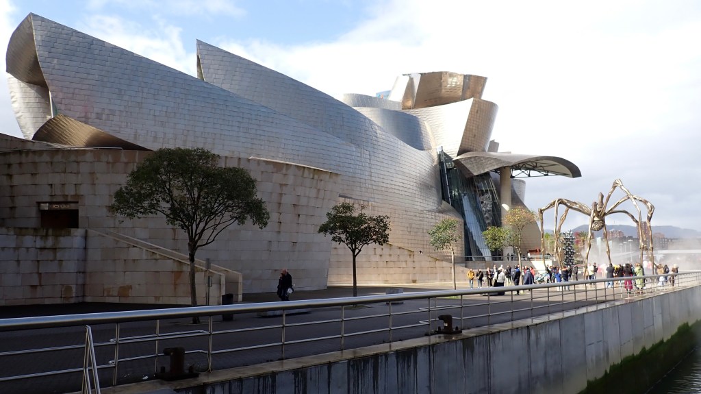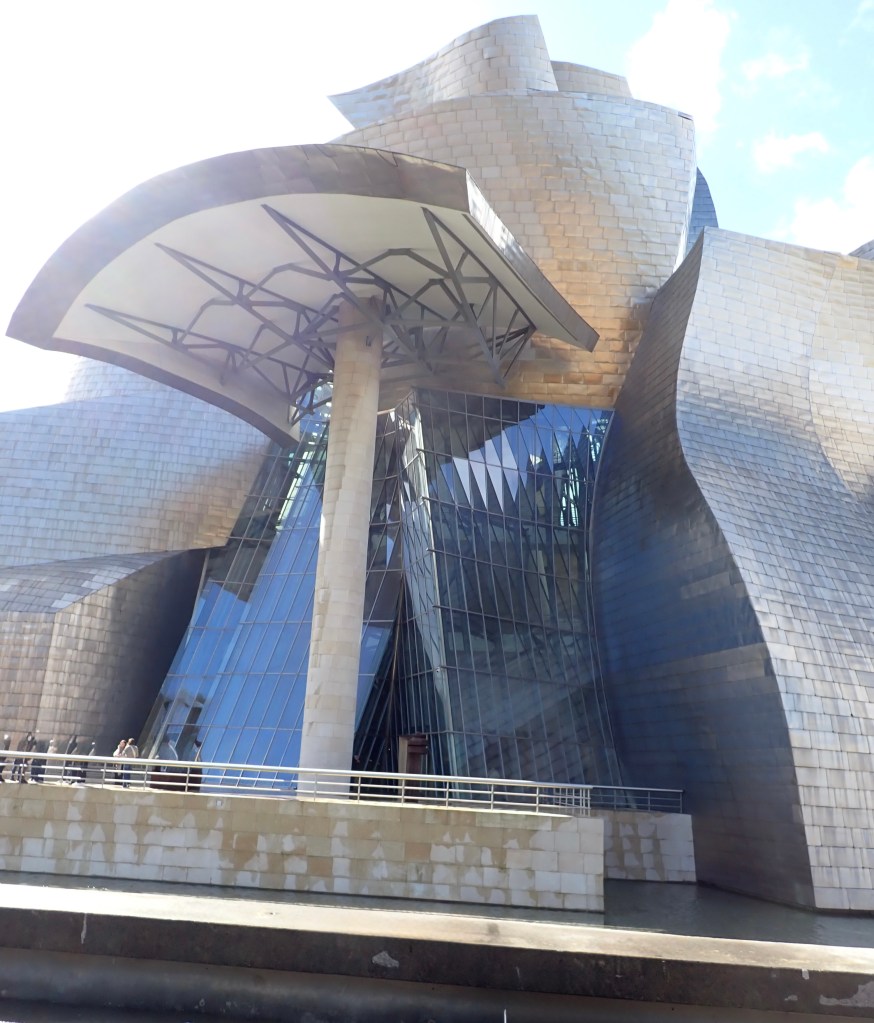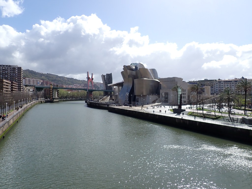 To be honest, we both do like Architecture, primarily the older stuff, but we do also like some of the modern stuff, however, I wasn’t exactly overly impressed with this, it didn’t seem to live up to all the hype, or perhaps we had just seen it, from every angle, including drone footage, too many times before. We persevered and walked around it, even taking a couple of photo’s, although I could have just cut and pasted those from some other media publication and you would never have known 🤭 But no, we were there and these photo’s were taken with my very own ‘clicker finger’, honestly. I should just say though, that as we crossed a footbridge back into the ‘Old Town’ district, the ‘Guggenheim’ looked a lot more impressive from a distance.
