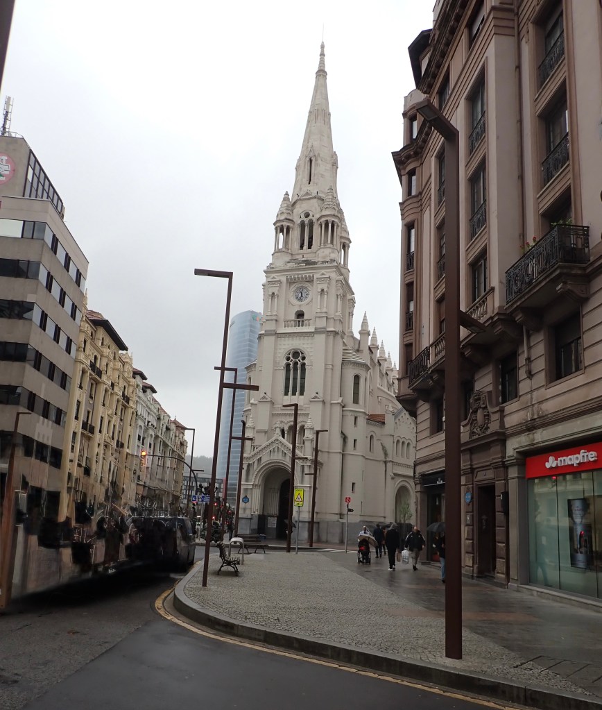 What I discovered was that these Bronze Statues are known as ‘Las Sirgueras’ (Rope Girls) and are a fairly recent addition to the riverside Paseo, only being unveiled in 2021. They are to honor the 19th Century ‘Basque Women’ who physically towed cargo ships, laden with ‘Iron’, along the Estuary during the Spanish ‘Carlist Wars’, whilst the men folk were away fighting and so, these statues represent the recognition of ‘Invisible Women’s Contribution’ to the Industrial, Economic and Social Development of Bilbao. Even though our walk had been interrupted several times by the wet stuff, it hadn’t really spoilt our wanderings and, as usual, we had no specific ‘must see’s’, apart from the Guggenheim of course, we just walked along a street then, for no reason inparticular, would divert down another, then another to see if there was anything of interest. The city centre didn’t offer much, we are not shoppers and just like many other modern cities and large towns, the busy internal streets were filled with the same corporate retail chains so we chose to just head for the riverside and the outer periphery, to look at the views. There were boats doing the usual tourist scenic trips and to be honest, although a little chilly, it would have been a good day to do one, as most looked pretty empty, apart from a handful of souls on board. However, over the last couple of days we had probably walked beyond where the tour boats would have gone, and along both banks of the river, so we didn’t bother with a boat trip ourselves. Once back on the Eastern side of the river we were back in the Old Town district where the riverside promenade was more of a relaxed tree lined avenue sort of walk, the river on one side and the quieter roads on the other. On our first day we had walked a little over seven miles in total, on this second day only five miles, but we were beginning to get a little leg weary so when we came to our hotel we both agreed that we were still pretty much full from our earlier generous breakfasts, so we didn’t need lunch, although it was well past lunchtime, but a rest and a coffee in our hotel room would suffice, okay, and probably a brief Siesta 😂