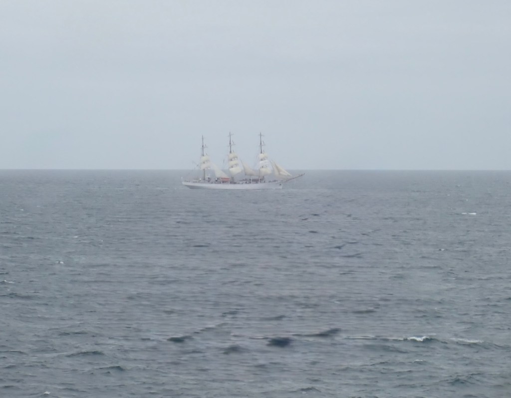 We had a cabin that had a nice big viewing window, however, apart from the odd fishing vessel, or a freighter or two on the horizon, we rarely saw anything else, not even any Dolphins or Whales on this trip. So it came as a nice surprise, when I just randomly took a look out of the window, to see us passing a three masted sailing yacht.