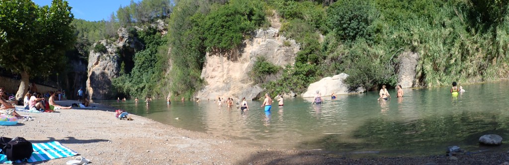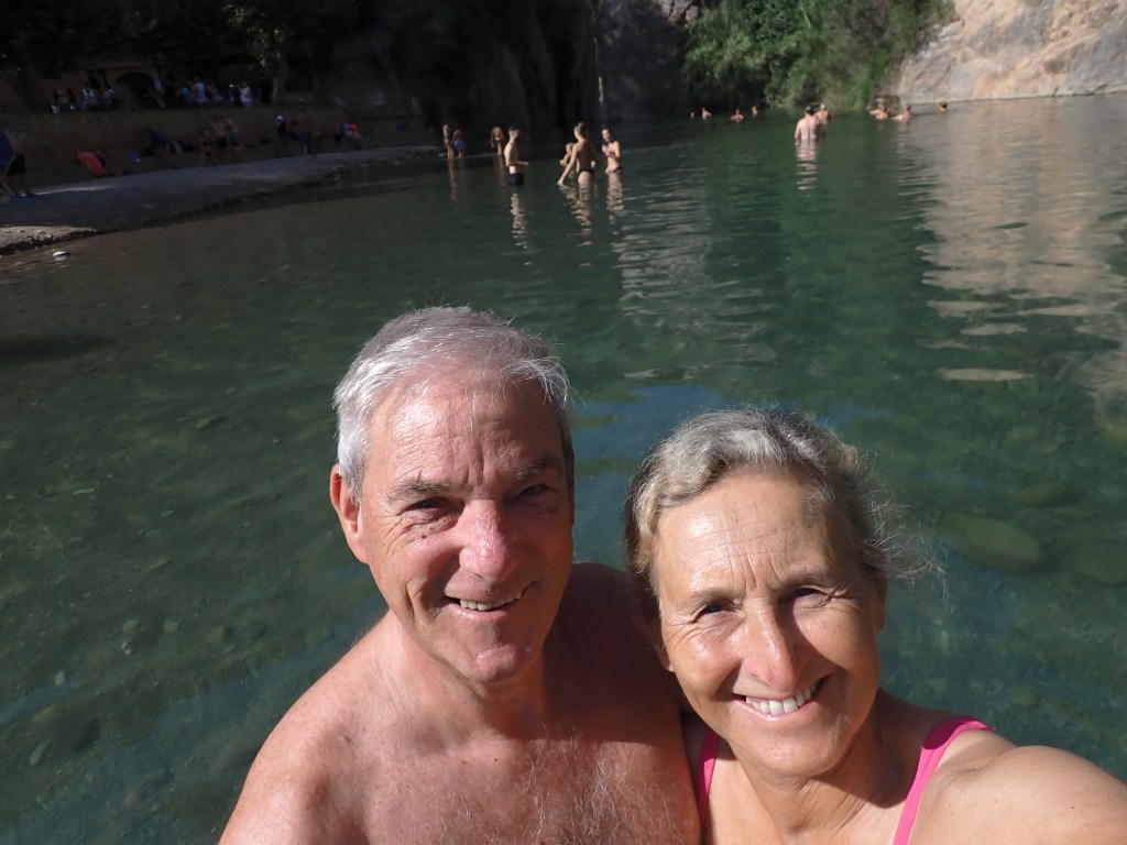 Our final day arrived and it would be a more leisurely day, a late breakfast at our now usual Cafe in the town, then we returned to the hotel, got changed into our swimming gear, grabbed a towel and off we went on the fifteen minute walk to the ‘Fuente de Los Banos’. It was a pleasant enough walk along the wide riverside path, the sun was high in the sky but there was lots of shade along the route.