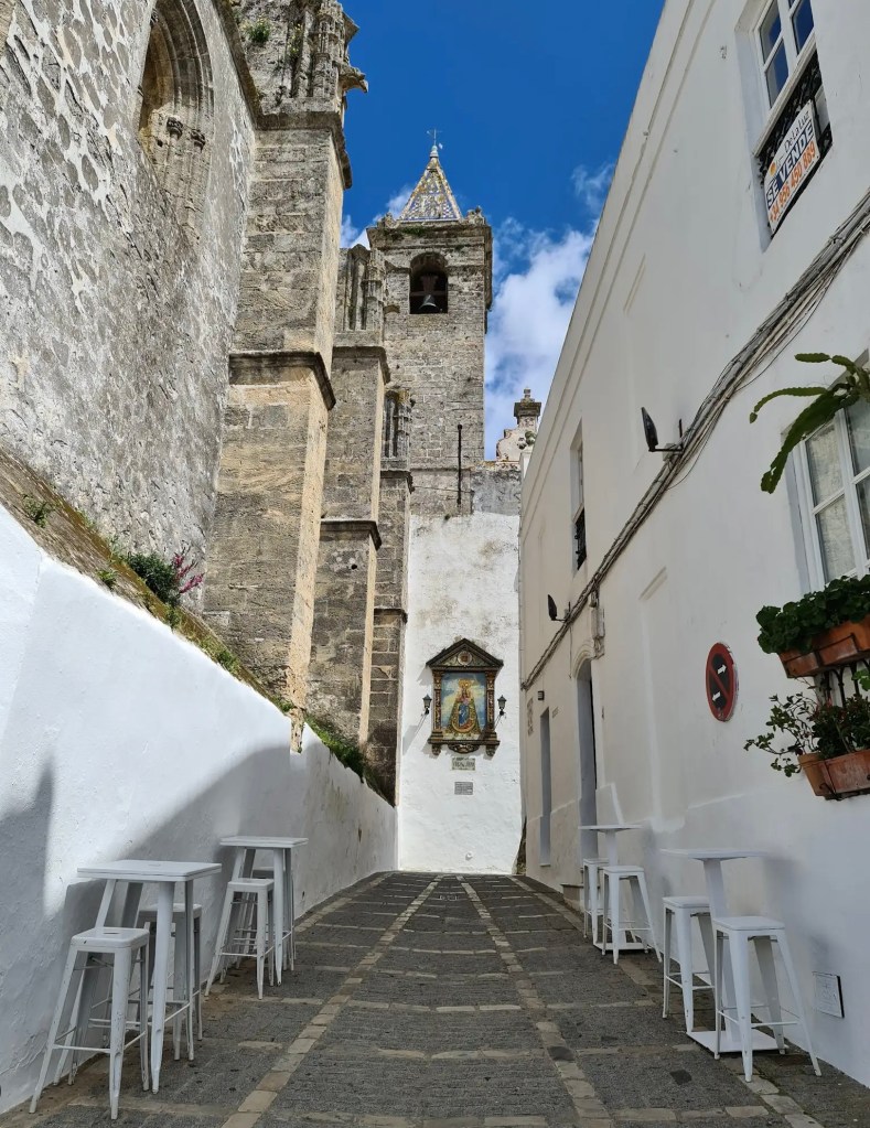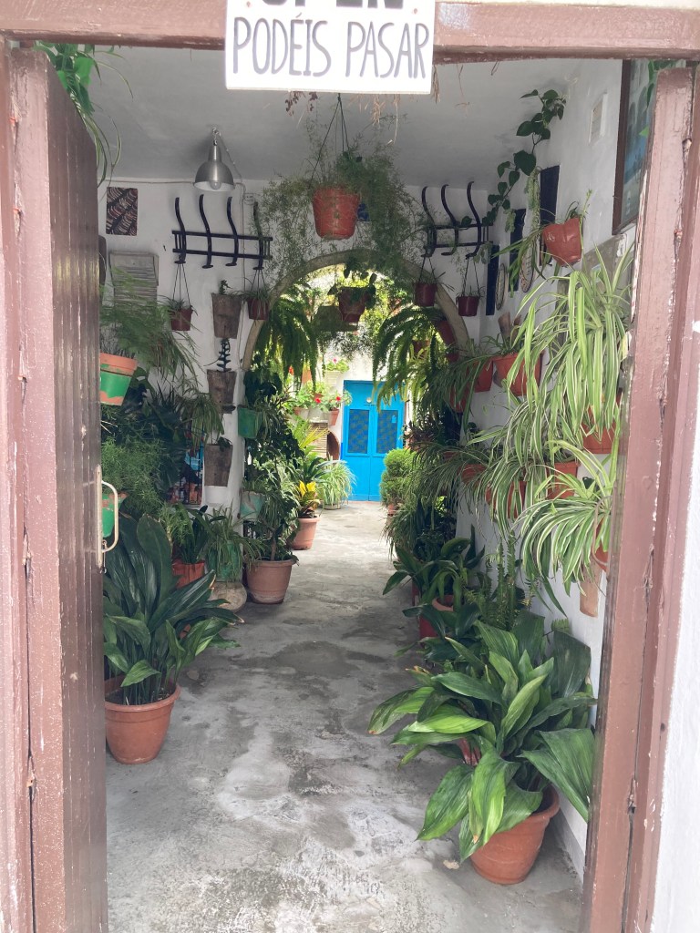We took a different route back towards the city centre, just wandering aimlessly down narrow cobbled streets as we normally do. We didn’t see many people, probably because we were off the normal tourist route, and just to confirm that, not one ‘Tourist Tat’ shop did we see, it was so quiet and peaceful and probably just as important, it had remained dry. We were both getting ready for a drink and some lunch, the Alcazar had a large Cafe/Bar within the public garden area, at tourist prices of course, so we started to look for a more suitable back street hostelry, somewhere that the locals would frequent, rather than the tourist muggers establishments.