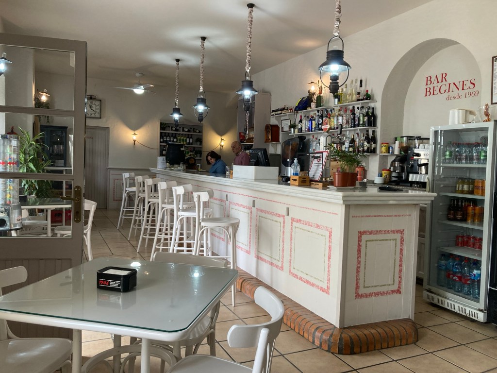 From the outside, the entrance to the Cafe/Bar was small but, on entering, the internal space was quite large, although the majority of the tables were not occupied. There was an elderly chap stood at the bar and in one corner a table with two middle aged women drinking coffee. “Buenos Tardes’ they all said in unison as we approached the bar, which is normal here in Spain, “Buenos” we responded. The barman gave us a welcoming smile, “Bienvenido, como puedo ayudarte?” (Welcome, how can I help you ?) he asked, we of course answered in Spanish, ordering two coffee’s, a Cafe con Leche and a Cortado and asked if he had a menu. He gestured for us to go and sit at a table, telling us that he would bring our coffee’s to us. This was just a normal type Cafe/Bar, nothing sophisticated just good basic food, Shazza ordered a Calamari Sandwich with a side portion of patata’s, whilst I selected a Tortilla (Spanish Omelette) sandwich and a side portion of patata’s, expecting them to be the small baguette sized rolls that we are used to in our own area. What arrived made us both look at each other with raised eyebrows, the baguette rolls were twice the length and width and, the portion’s of patata’s, two individual bowls, were not the French fries we had anticipated, but small fried cubed pieces of potato, and each bowl contained massive portions. Had we have known the portion sizes we would have just ordered the one bowl 😲 We ordered a couple of beers and apologised for the both of us not managing to eat all of our food, we hate wasting food but we certainly couldn’t have stuffed anymore in. “No hay problema, estaba bien ?” (No problems, was it okay ?) he asked, “Muy Sabroso, Gracias” (Very tasty, thank you) we both replied, he gave another smile and we asked for ‘La Quenta’ (The Bill). Our eyebrow’s raised again when we received the bill, only €30 (£25) for four drinks and two generous sized and tasty meals. The old chap was still stood at the bar when we left, we hadn’t seen him with a drink all the time we had been in there, he had just chatted away to the barman, whom we assumed was the owner, the two women had left once and then returned again later and, as we left, as is customary, they all said “Luego” and we returned the pleasantry.
