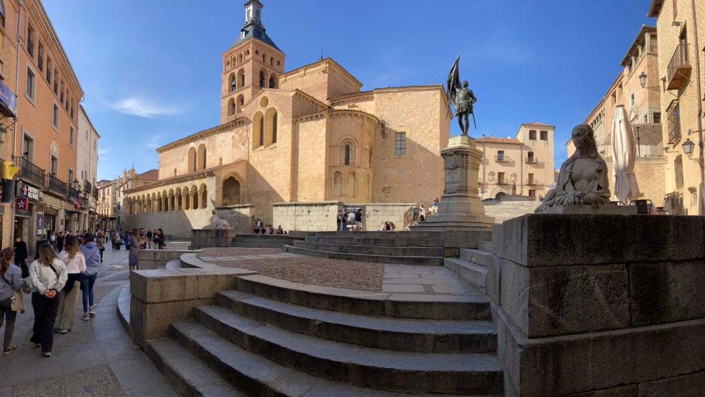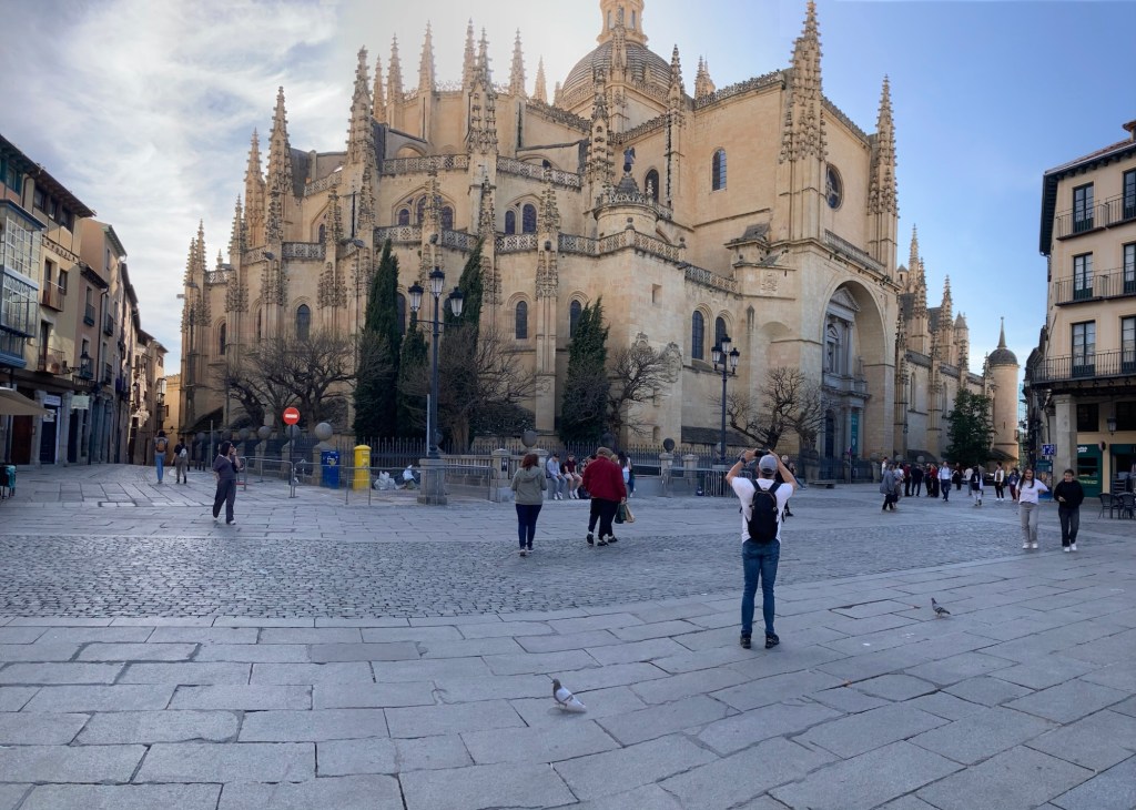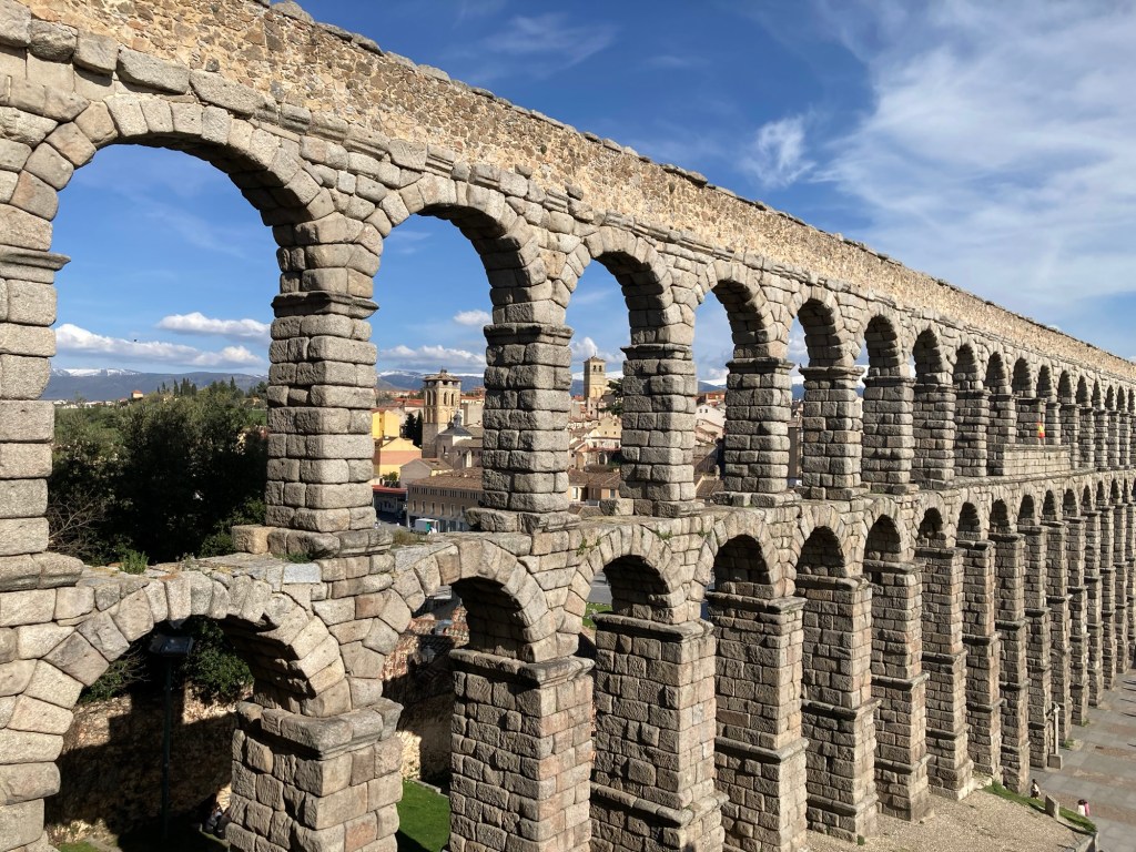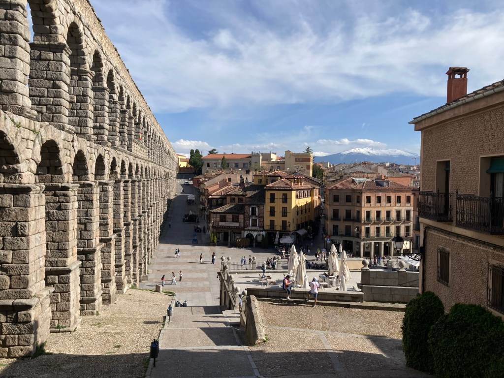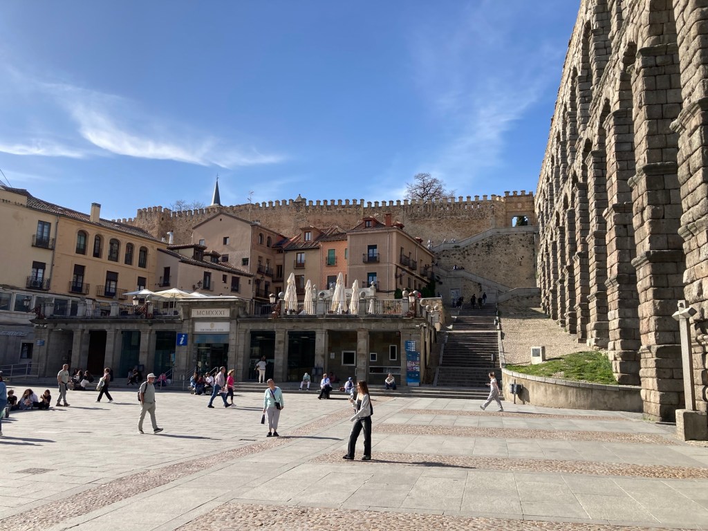 Not knowing whether the ‘Works of Fiction’ would get it right, or wrong for the following day, we both agreed to get out and do as much sightseeing as we could in what was left of the daylight and sunshine and we both needed to stretch our legs after the long drive. According to ‘Google Maps’ on our iPhones, the city centre, and more importantly, the iconic ‘Aquaduct’, was only a thirty minute walk from the hotel. From the amount of traffic, and pedestrians, that were out and about, it was apparent that the ‘Siesta’ period was over and although normally we would just wander amongst the side streets and narrow alleys, we agreed this time to just follow the directions to the Aquaduct and then take it from there. There was quite a lot to see in Segovia, the Iconic Roman Aquaduct, is made up of 24,000 large granite blocks and they are joined together without any mortar. It has 160 arches and stands, at its highest point, 28 metres (93 feet), and amazingly it still carries water 16km (10 miles) from the ‘Frio River’ into the city. But there is so much more to see, such as Medieval Walls that skirt the city, Romanesque Churches, Cathedral, Alcazar and of course, as in most Spanish Towns and Cities the ‘Plaza Mejor’, some of which are more impressive than other’s but, just how much we will actually get to see in Segovia we didn’t know. Now, and, as you already know, Shazza and I are very much history heathens, but we do like looking at old impressive architectures like these, and no, before you even think it, with Shazza herself due to reach a milestone birthday in only a few days time, that doesn’t mean that these days we could both now just stand in front of the mirror to view some wonderful old architectural structures 🤭 What does impress us though is that these, and many other historical structures around the world, were built many thousands of year’s ago (Not of course referring to our own personal bodily structures) and they are still standing today, many of them still functional, but just how many of today’s modern structures will still be around in perhaps only a thousand year’s, let alone tens of thousands 🤔