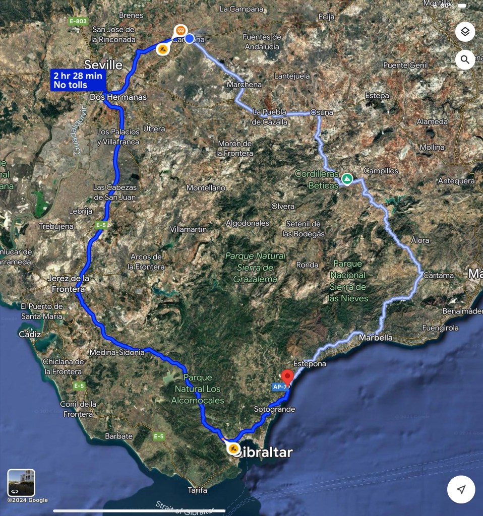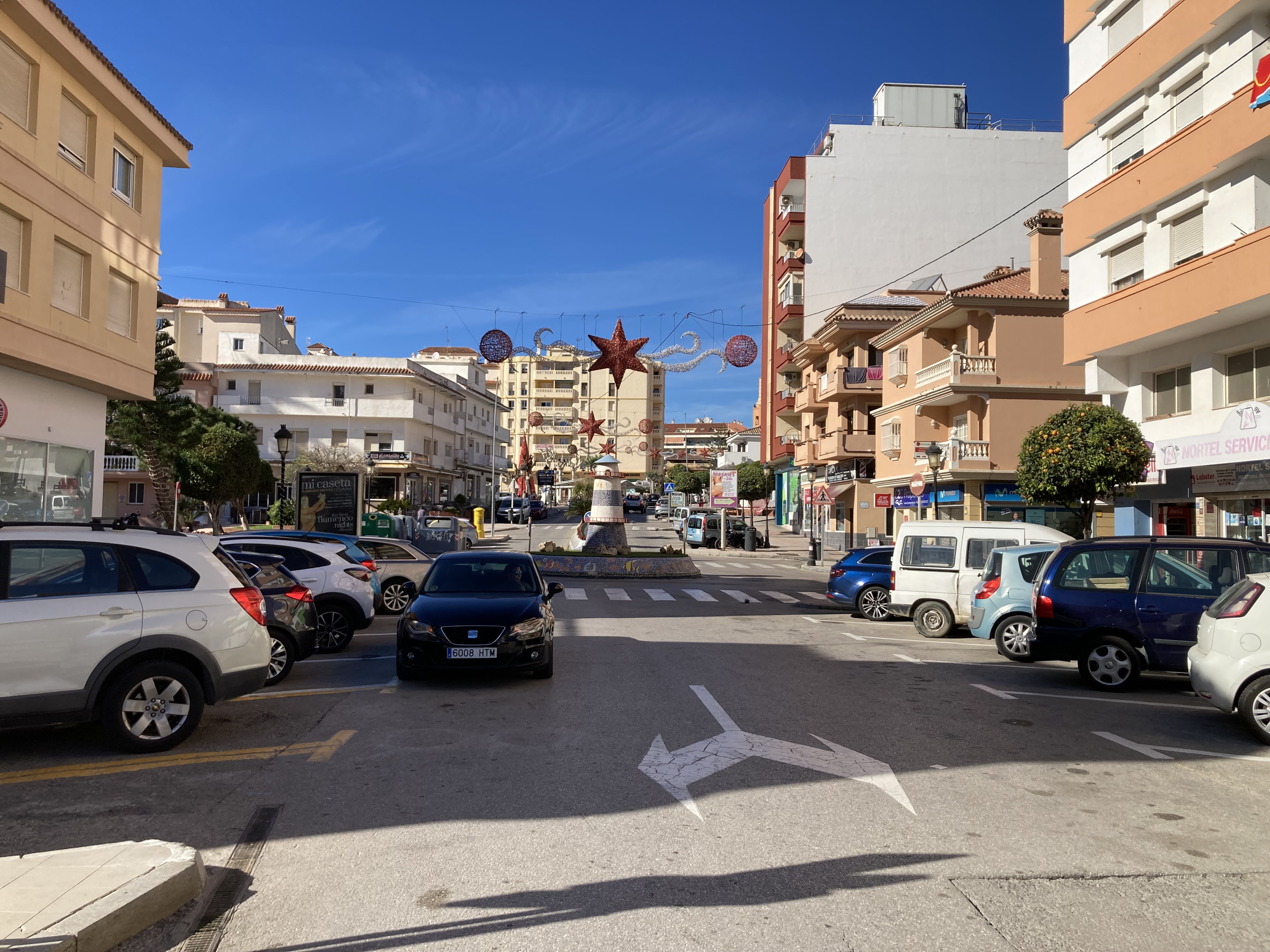 It was a bright and sunny morning but still quite chilly, at only 8 degrees(c), so we were both wearing our jeans and ‘three’ top layers of clothing, roll on March when Spring and the much warmer weather will return to these shores 🥶 However, inside the car out of the chill, with the heater on and the sun shining in through the windows, it was warm, even the sparkling bright blue sea looked enticing. This part of the coastal road is always busy with cars, motorcycles, buses and trucks, all in a hurry to get somewhere and, although their are several different holiday coastal resorts along this particular stretch, from San Pedro all the way up to Fuengirola, and beyond, apart from the signposts identifying that you have entered one, it is hard to differentiate between them as they all sit next door to each other, with their own high rise apartment blocks, hotels, shopping malls, marinas, seafront promenades, although occasionally there is a stretch where the pine forest disect the communities, but basically it is just a mass of sprawling urbanisations on both sides of the road. Shazza had elected to drive and so I just sat and gazed out of the windows looking to see who had the best views from their apartment or hotel windows and balconies, although I couldn’t spend too much time daydreaming as I also had to act as an extra pair of eyes on the fast moving traffic that comes at you from all sides. Although it appears busy now, it is ten times worse during the peak Summer holiday period, that is when we choose to pay the small toll fee and use the very much quieter AP7 that virtually runs parallel with this coastal road. Nobody along this particular stretch of the A7 is very far from the beachfront, or town centres, some can walk to them from their front doors, whilst for others it may be a short 10-15 minute car journey or bus ride. We both commented on how long we thought it would be before these type of coastal Urbanisations engulfed our area too, with the number of cranes dominating the skyline erecting new build holiday complexes all along this coastline at an astonishing pace, we agreed that it may not be that far away 😢