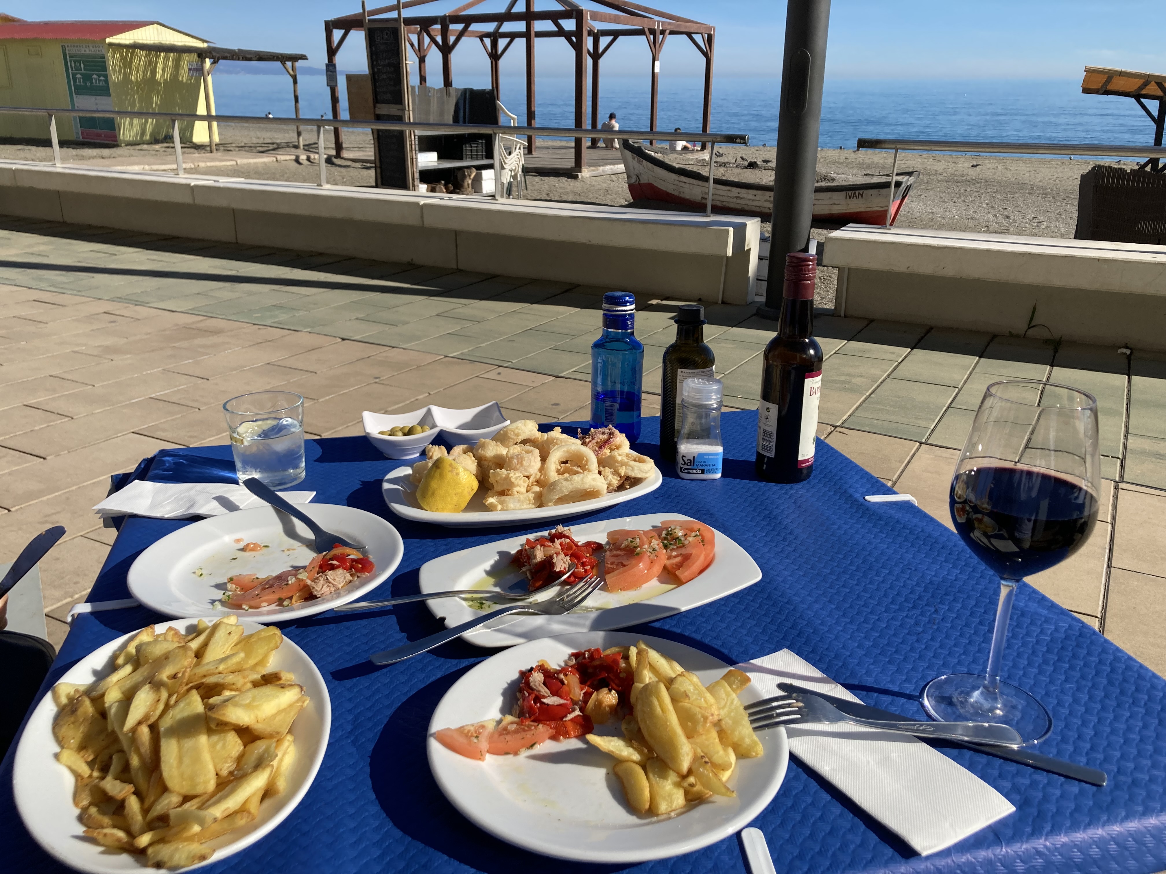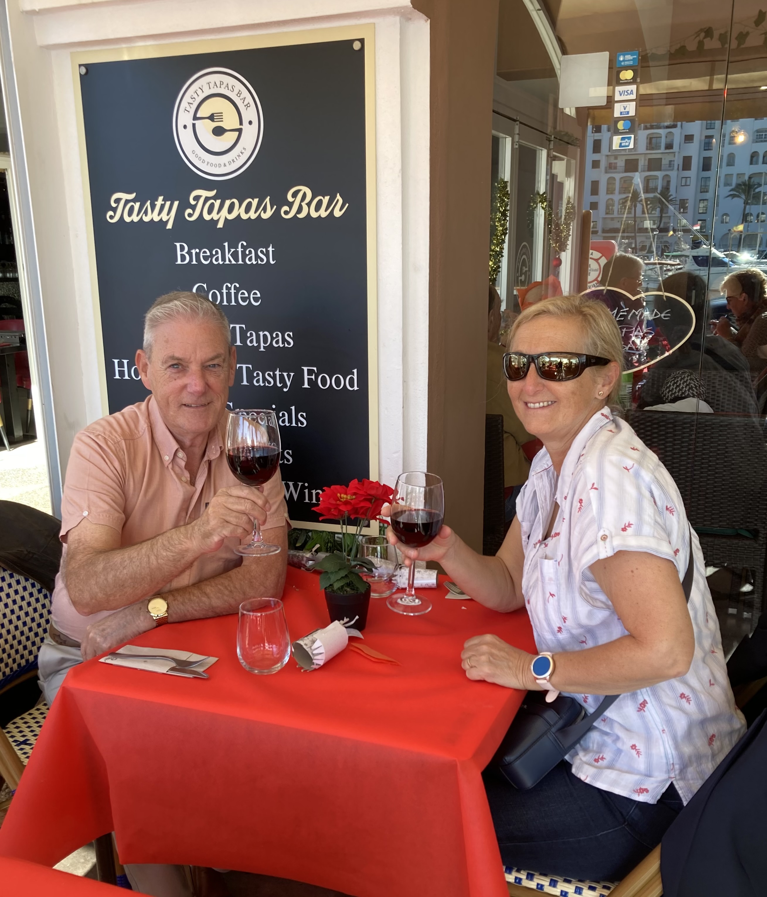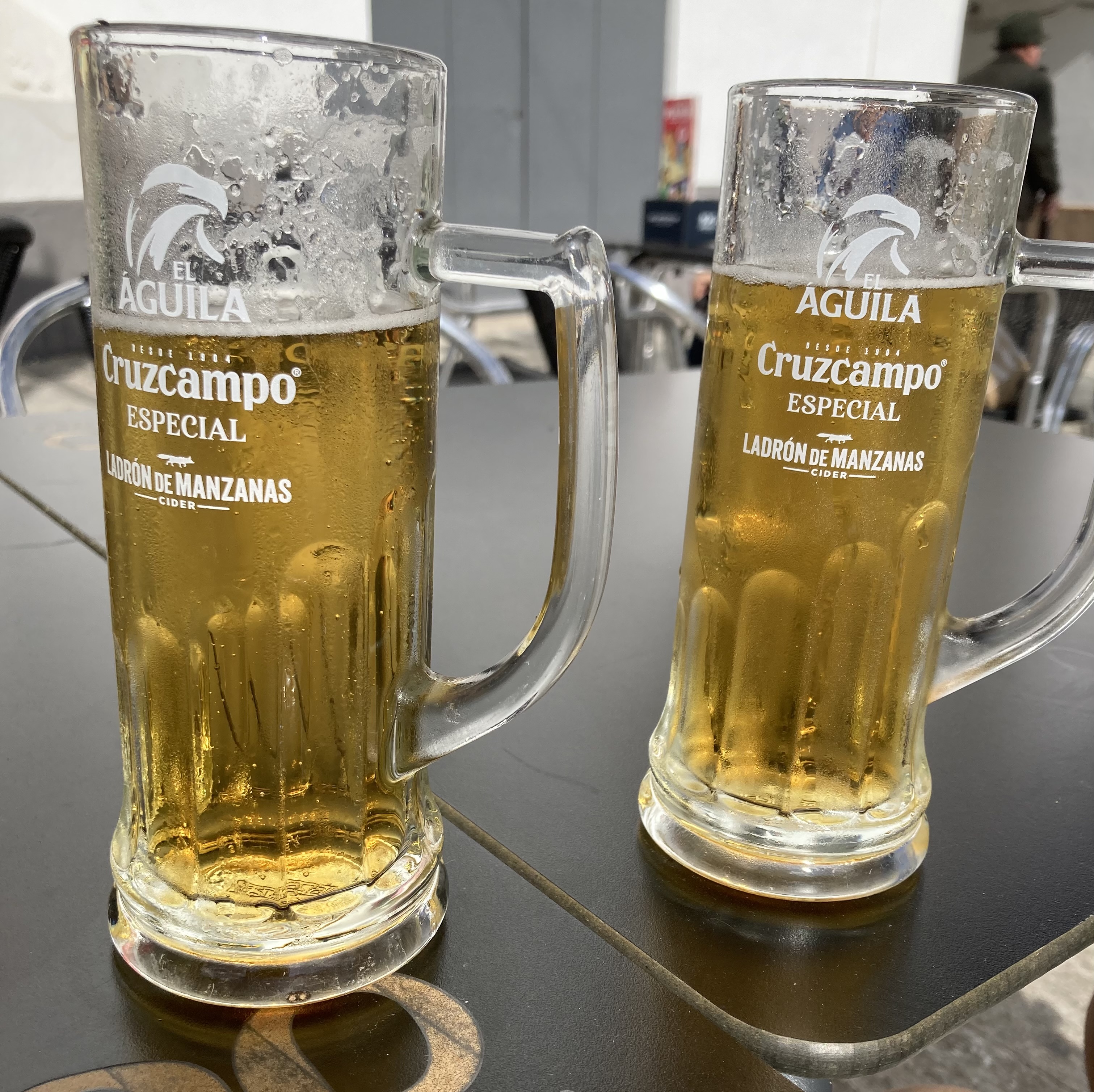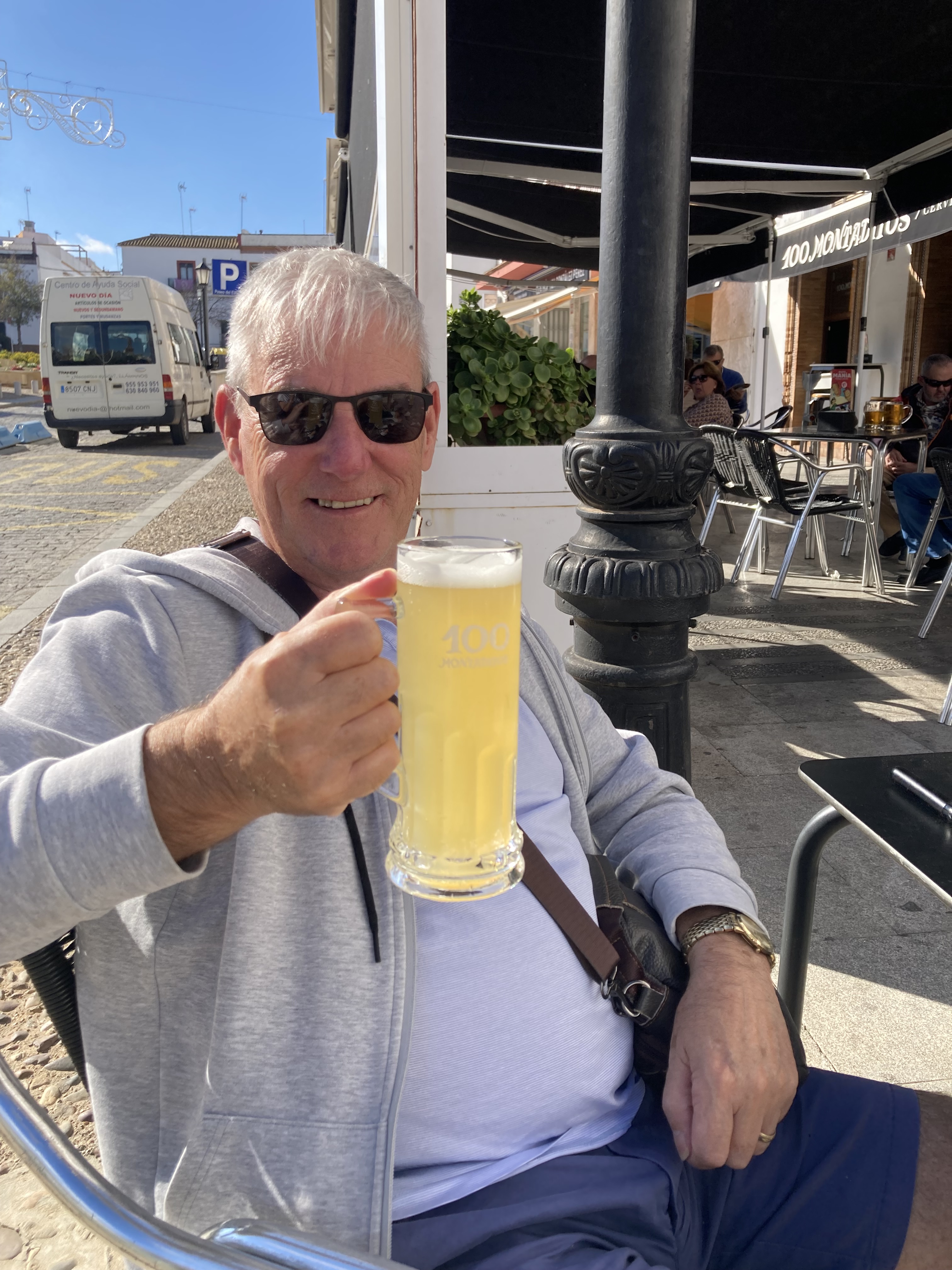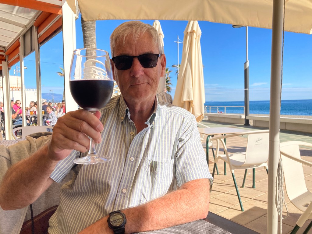 We decided that as it was the weekend we would delay our usual daily walk and, instead of stopping for a coffee, as it would be nearer lunch time by the time we reached the town seafront, that we would partake of a nice cold ‘Cervesa’ (Beer) first, and whilst doing so could, amongst our people watching and listening activities, choose what and where we fancied going for lunch 😋