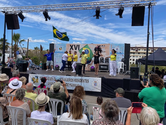 Our local Mayor was of course in attendance to open the event (Chap with the blue blazer and beige trousers) and, although ‘Manilva’ is obviously not a country in its own right, just a municipality within the Malaga Province of Andalusia, we did of course, as hosts of this annual event, have our own stand, well it would have been rude not to 😉During the day there was dancing and music from some of the representative countries, with the local children’s dance school opening the proceedingsBrazilian Salsa, that got a lot of hips swaying and not just from the performer’s on the stage 💃😁