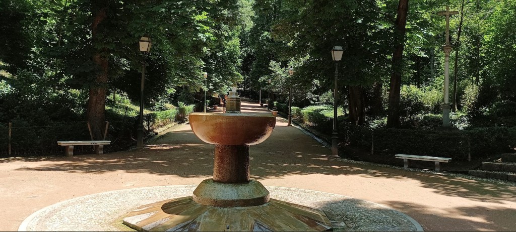 The twisting walk down the hill was no less strenuous on the calf muscles and knee joints as it had been the previous day, but there was lots to look at on the way down and so it was quite pleasant. As we walked down we could see the other forest paths, winding their way up to other areas, the map also reflected that there were other attractions, statues, fountains, flower gardens etc. but going back up to explore them was certainly not going to be an option that we were going to choose, at least not today.