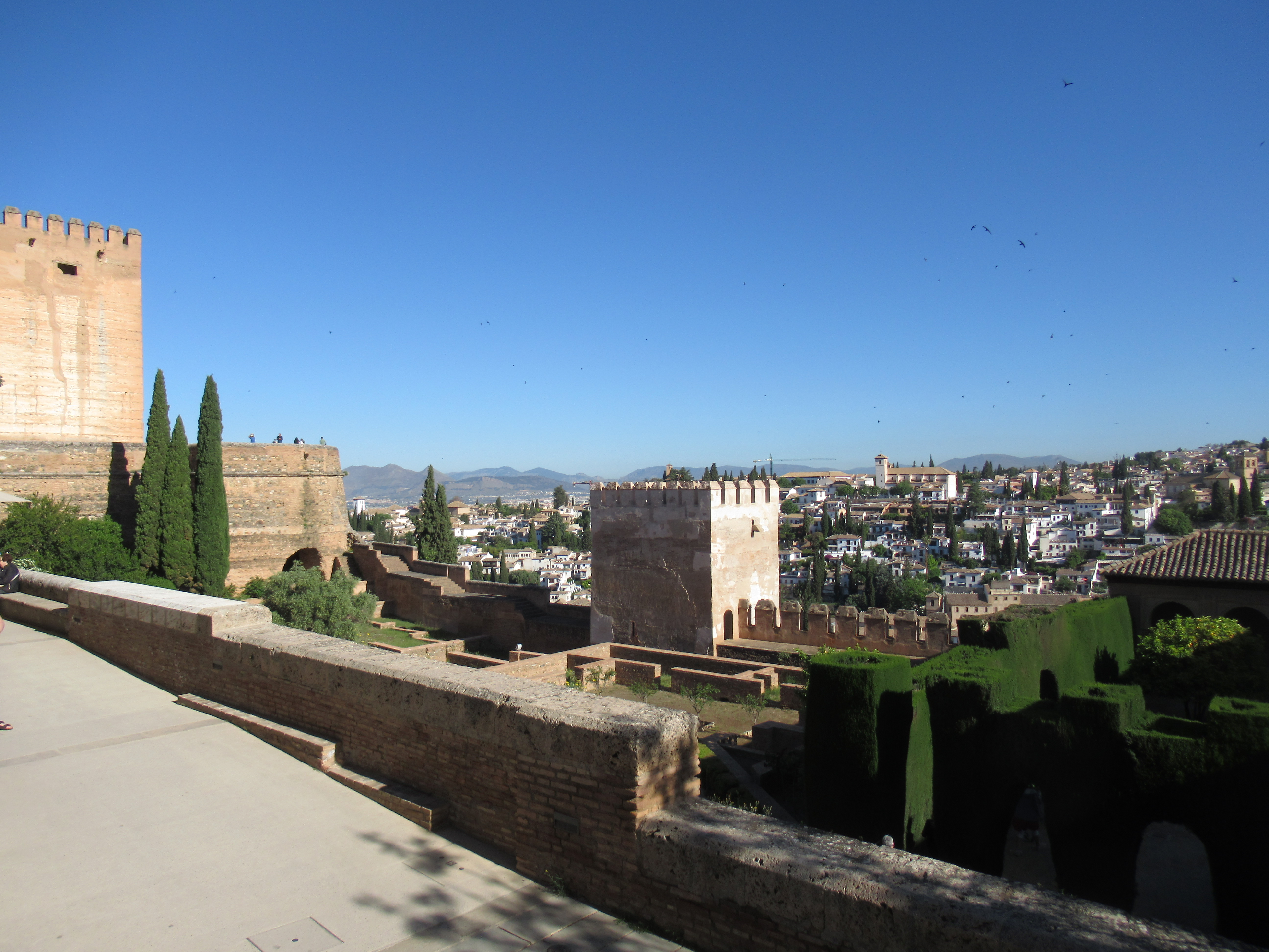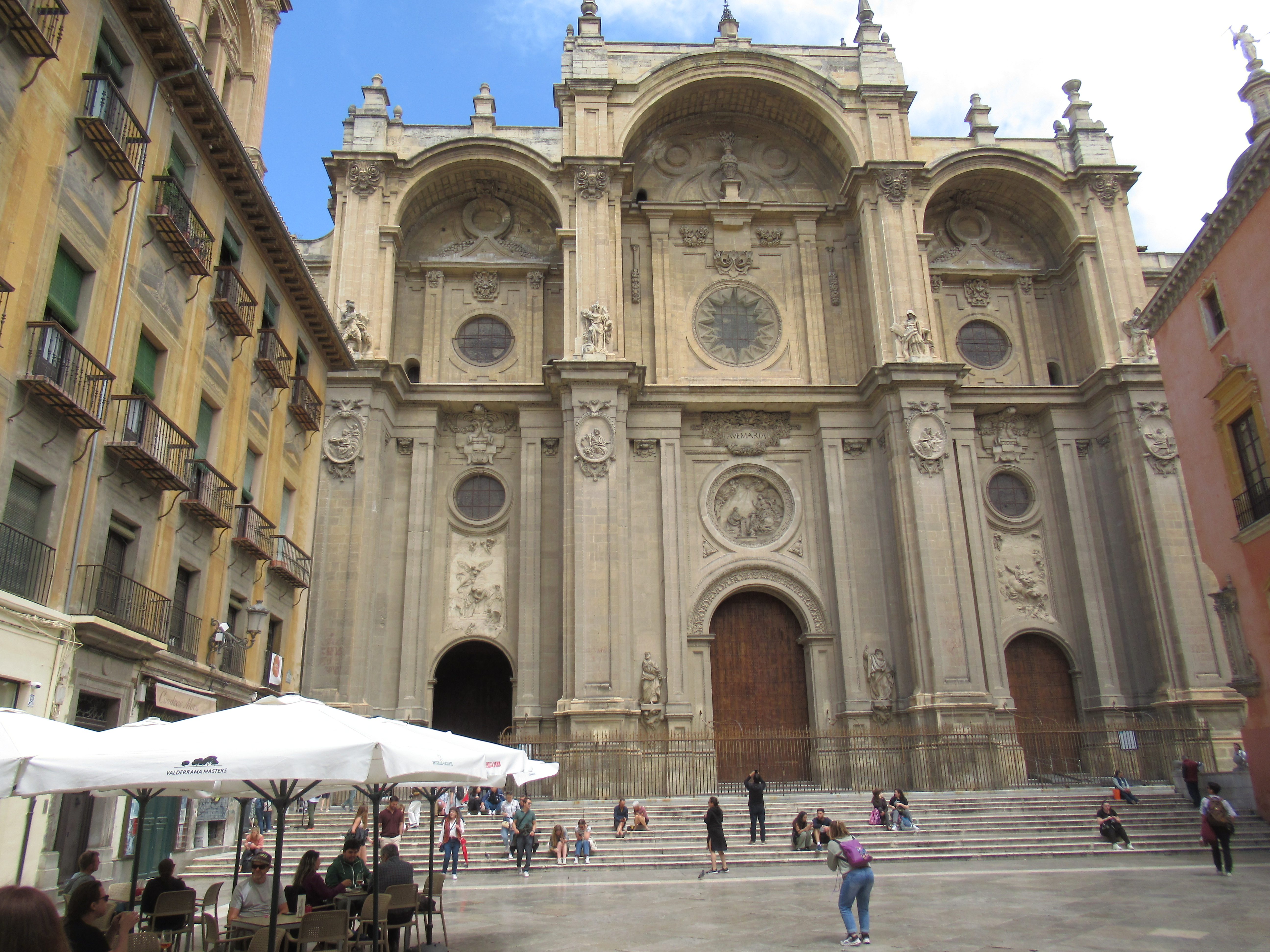 At the bottom of the hill, and believe me, the camera lens does not give an accurate reflection of the distance in height between where I took the photo and the outer walls of the Alhambra above usOne end of the cathedral near the centre of the City, this was to become our reference point for finding our way around over the next couple of days, it was also only a short walk from here to our bus stop to get back up the hill to the hotel. Although, at ground level, due to other surrounding high buildings, you could not see the Cathedral from anywhere other than being back up the hill. ‘Plaza Trinidad’