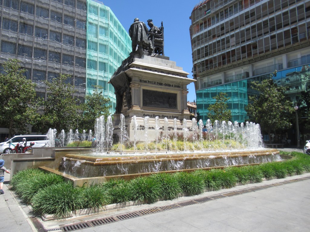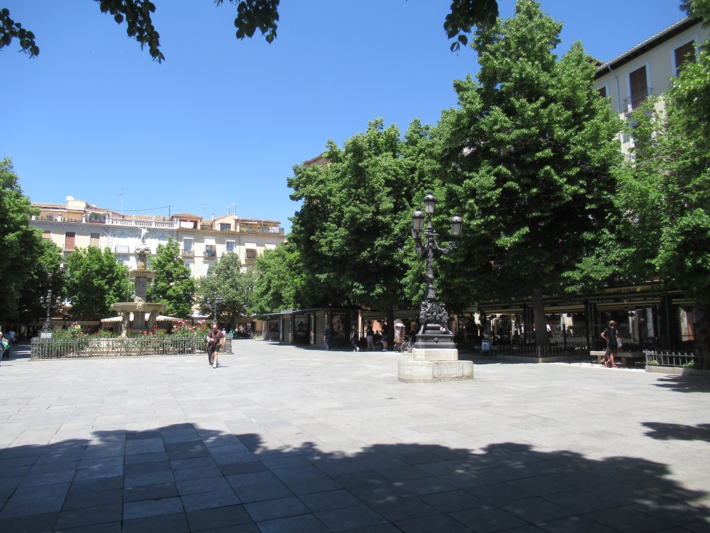 Now our usual method of exploring large Towns or Cities is to just not have a method and to just wander aimlessly up and down streets, getting lost, several times, finding somewhere to have a drink or getting something to eat, whilst perusing the street map in order to find our way back in the general direction of where we wanted, or needed, to be. And so it was that after wandering through numerous maze like, narrow cobbled streets and alleyways, that tended to all look very much the same, although they all had some amazing building architecture, apartments built in stone that still looked much like they would have done when they were first built, very ornate stone, small balconies, wooden window shutters, iron railings garnished with colourful plants and shrubs. They certainly have lots of Monastries, Convents and Churches in this City, on almost every street, and it was whilst we were wandering along one of these narrow cobbled streets that we came across the very small but pretty ‘Plaza Trinidad’. There was a small ‘Kiosko’, which sold a variety of soft drinks and snacks, however, in one corner of the Plaza there was a little pavement Cafe nestled under some Orange trees which shaded it from the heat of the sun and, as luck would have it, there was one unoccupied table, that very quickly became occupied, by us !! We were appreciative of the shade as we sat with our cold beers, from the local brewery of course, ‘Alhambra Especial’, what else ? Although we discovered this particular brand in a Promenade Cafe down in our own local town on the Costa del Sol and I have to say that we prefer it to some of the other’s on offer. We spent some time just enjoying the calmness of what was now fast becoming the late afternoon, with a spot of people watching thrown in for good measure, well it would have been rude not to 🤭 There were lots of Backpackers scurrying around with their heavy loads on their backs, maps in hand, probably attempting to seek out cheap overnight hostel accommodations, and they were of all age groups and not just youngster’s, there were men and women in suits dashing to and fro, probably on their way back to their work locations after their 2 hour ‘Siesta’ lunch periods and of course lots of tourists, like us, clearly obvious with their tourist street maps in hand and stopping briefly to check and orientate themselves as to where they were, even here their were the ‘Lookie, Lookie Traders’ going from table to table, or park bench to park bench, attempting to sell their ‘Tourist Tat’ and then, just as prolific, were the street buskers, some not so good as other’s, but it all added to the ambience.