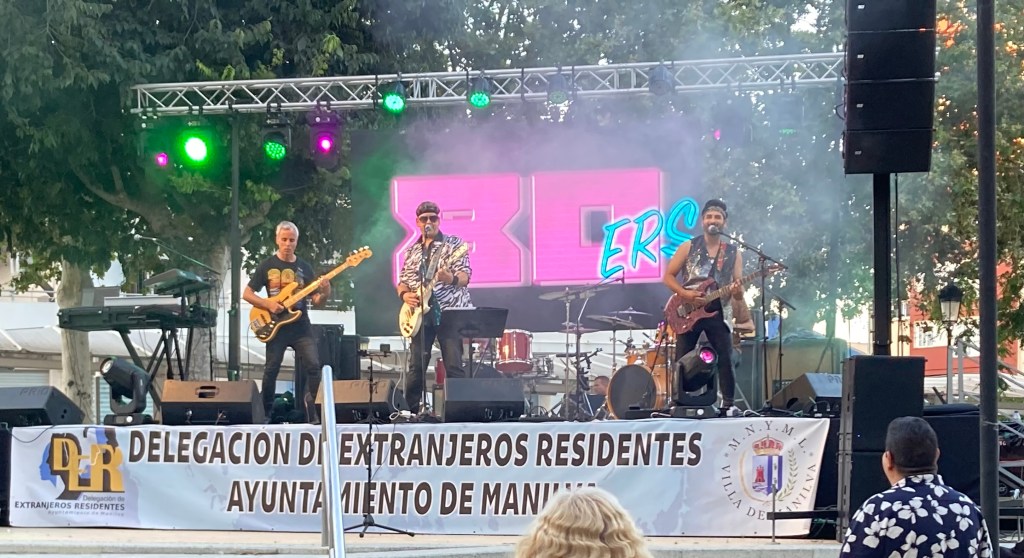 We had walked off some of the effects of our meal and so headed back towards the town’s central Plaza to see if we could find a table to sit at, to watch the evenings musical entertainment. The local Community Council put on these events throughout the Summer months, they vary the Plaza’s where they are held so that all of the Cafe/Bars in each area get to benefit from the additional trade that they pull in, but each of these events are ‘Free’ to attend. We were lucky to find a table outside one of the several bars and it had a pretty decent view of the stage. It was still light so the actual stage lighting, for the duration that the supporting band were playing, was not really fully effective, but they were really really good, playing a wide range of 80’s top hits and singing in English, which was a very good bonus.