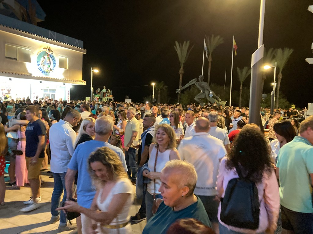 We departed before the bands struck up, and which would continue well into the early hours, I certainly wouldn’t want to live in this part of town on such night’s, but I guess that if we did, then it would just be a case of ‘If you can’t beat them, join them’ 😂 The large crowds remained, and after leaving the beach area they just joined the rest of the throngs of people at the bars and in front of the stage area. Fortunately, once we were away from the main town promenade area, it all quietened down, people wise that is, although we could hear the ‘live’ music even when we got to the marina, which is a good twenty minute walk away. But we enjoyed the more leisurely walk home and, although the ‘Heladeria’ kiosk near the marina was still open, we both agreed not to stop for an ice-cream, like we had done the previous year, as we had gone past the desire to eat anything by that time 🤷♂️ We both really just wanted to get back home, me to the peace and quiet of my balcony, sat with my hot mug of cocoa Coffee 😉 Whilst Shazza retired to her own sanctuary of the bedroom. All in all though, it had been another good evening, and a relatively busy few days. We do like the fact that we feel completely safe here, even apart from the possibility of being crushed on night’s such as this 😲 However, there is never any bother at any of the Fiesta’s here, even with the copious amounts of alcohol that get’s consumed, and as I have said on several occasions over the year’s, we have never seen any loutish behaviour or drunken brawls, everyone is just so chillaxed and happy and we hope, long may that continue to be the case 👍