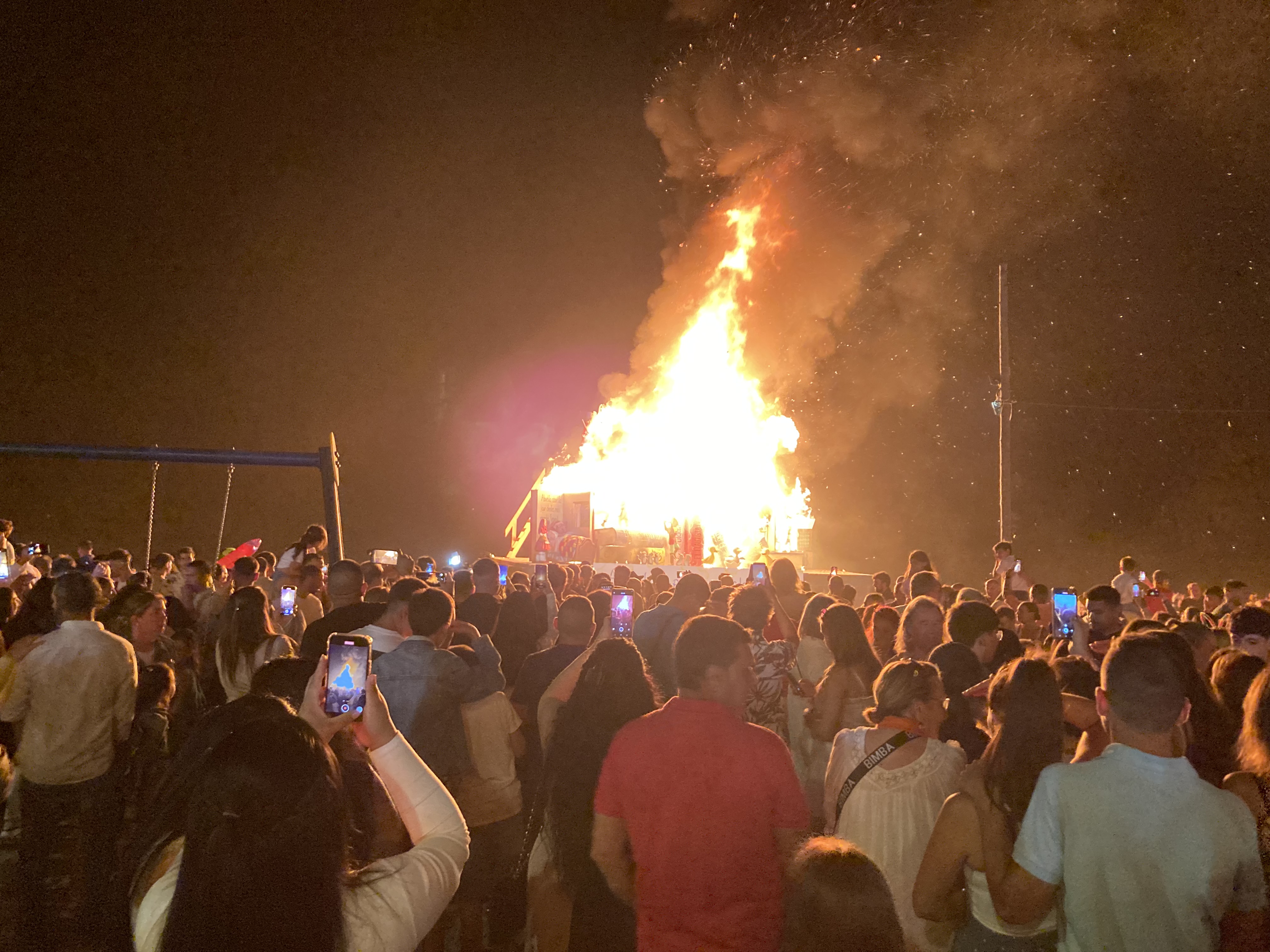 Just to give you some idea on how high this structure actually is, the white sign at the front stands over eight feet tall. Similar events to this do take place throughout the whole of Spain, not just on our beach in our particular town, although I am not sure how they get on in places where they do not have beaches 🤔 Although, I guess it must be similar to the UK when they hold their annual ‘Bonfire Night’, on the 5th November, although those UK bonfire piles are not quite as artistic as they are here in Spain, well come on, they wouldn’t be now would they, you should know by now, especially as I do keep reminding you of just how ‘everything’ here in Spain is always so much better than in the UK 🤭😉 Unless of course we had selected to live elsewhere, France, Italy, or Greece, then of course, it goes without saying, that everything there would have been far superior to the UK 😂